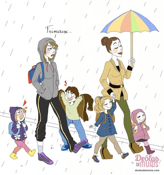 Je parie que ça te parle ça ! 😂 Qu’elles m’agacent ces mères parfaites ! Je me souviens d’un départ à l’école avec ma gamine qui avait tellement trainé pour prendre son petit déjeuner que je l’ai embarquée dans la voiture en pyjama et sa banane à la main. Elle a terminé de s’habiller dans la voiture 😂. Quelle mère indigne ! N’empêche, elle n’a plus jamais lambiné pour le petit déjeuner. Elle s’en rappelle encore ! 😄.
