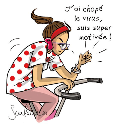 Me voilà dans la salle et je me dirige telle une habituée vers l’engin de torture. Note que l’illustration n’est pas conforme, ici, c’est un vélo tout court mais cette image me plaisait 😂 et je suis motivée quand même.