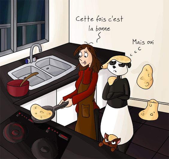 Prune admire son fils dont la crêpe a fait un double saut périlleux et est revenue dans la poêle.