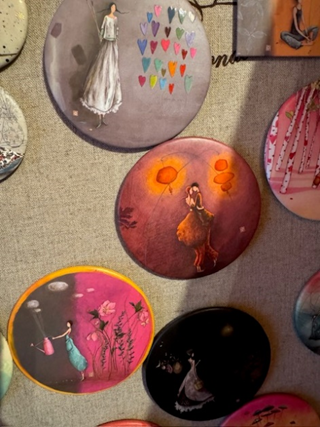 Viennent ensuite les magnets de Mila Marquis. Beaucoup de bonheur et d’amour dans le choix de ces magnets. Le trèfle à 4 feuilles, les cœurs, le couple qui danse. C’est un choix pour que mon bureau-atelier soit zen.