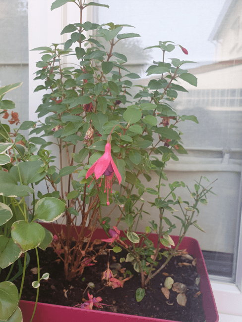 Je n’oublie pas le fuchsia à ma fenêtre de bureau qui fleurit encore.